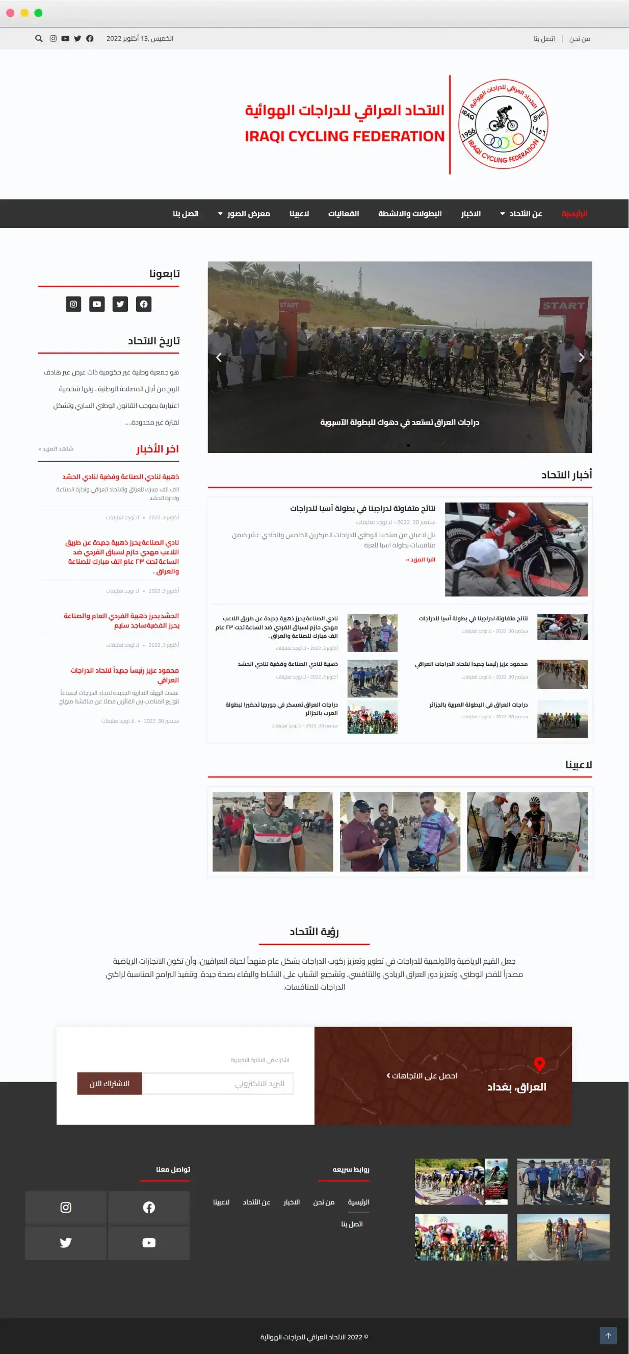 Web developer • UX & UI DesignThe Iraqi Cycling Federation is a national non-governmental organization with a non-profit purpose for the national interest. We created a website to serve as a source of information, for the team to share news and achievements with the wider world. The Iraqicyclists website has been implemented to display federation information and developments for the Iraqi teams. We use color-coded categories with progress bars and distraction-free reading to make understanding all this content fun. They make things up too, so we have services, schedules, case studies, and the like. it's a great job.